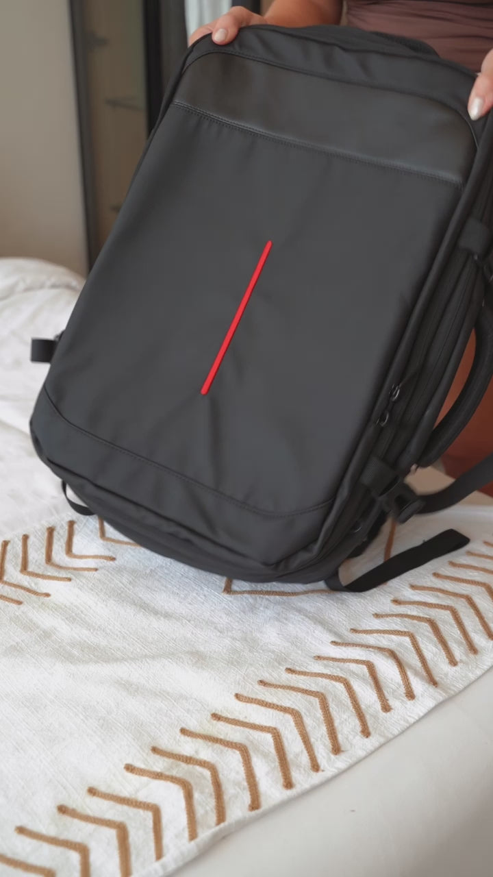 Designed for modern travelers, this backpack combines style, function, and innovation. With a built-in vacuum compression section, you can pack more while keeping your items compact and organized. Simply zip, press, and reduce bulk to maximize space.
